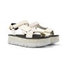 Bílý sandál pro ženy. Pásky z látky ze 100% recyklovaného PET s uzavíráním na suchý zip. Podrážka platformy EVA v čistě bílém provedení. Trochu lepší, nikdy dokonalé. Camper Webbing Houston sandály byly navrženy pro letní dny a vyznačují se silnou charakteristickou podrážkou pro větší výšku a unikátní vzhled. Výška je 4, 2 cm.