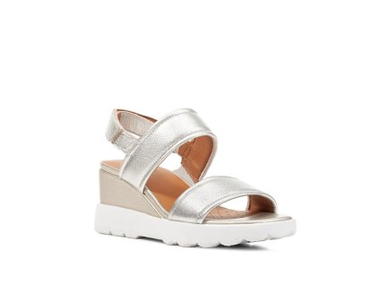 Lehké dámské sandály současného vzhledu na středně vysokém klínu plné ženské přitažlivosti a městské šik. Tato výrazná, ale všestranná verze má pružný svršek ze 100% nappa kůže a ve zlatém odstínu s pěknými překříženými pásky. Spherica™ EC6, spočívající na tlumící podrážce, poskytuje maximální pohodlí, stabilitu a podporu.